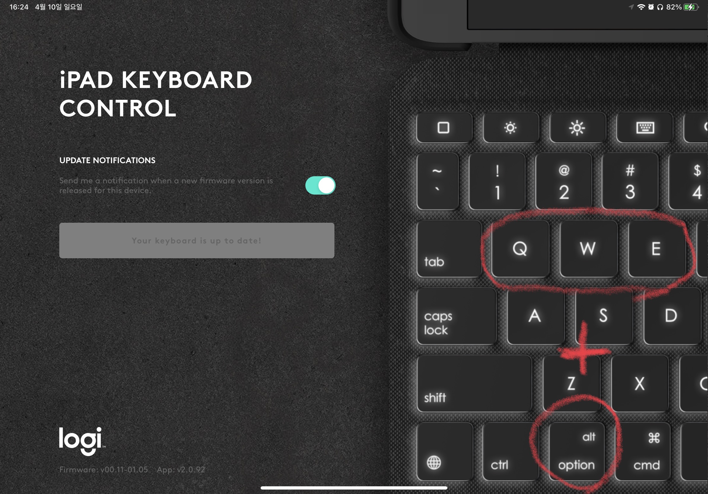 2. logitech 키보드 앱에서 펌웨어 강제 재설치